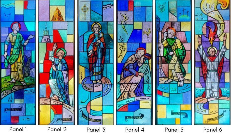 View our sanctuary’s beautiful stained glass windows depicting the life of Peter, our Patron Saint.